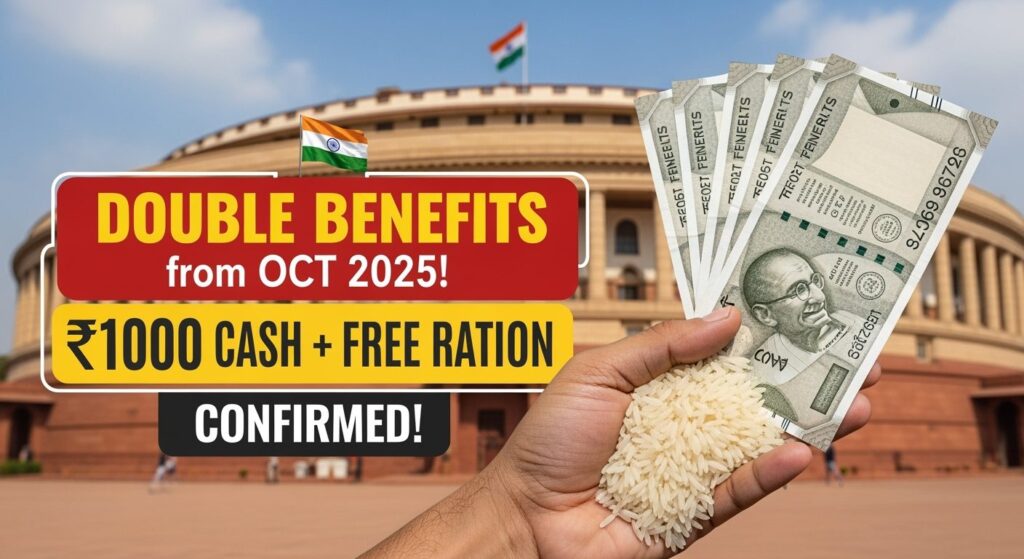 अक्टूबर 2025 से राशन कार्ड पर डबल फायदा, ₹1000 कैश + मुफ्त अनाज पक्का